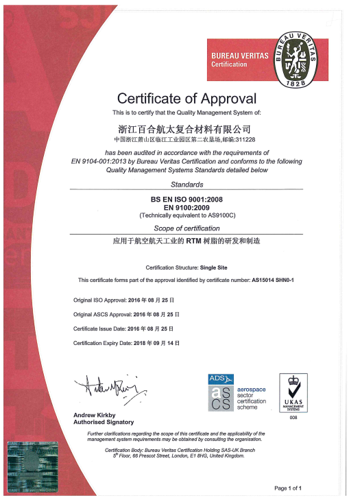 浙江百合航太復(fù)合材料有限公司成立于2014年,是集先進(jìn)復(fù)合材料產(chǎn)品開發(fā)設(shè)計、生產(chǎn)、銷售、服務(wù)于一體的高新技術(shù)企業(yè), 主要產(chǎn)品有復(fù)合材料液體成型樹脂、碳纖維、玻璃纖維和芳綸纖維預(yù)浸料、以及結(jié)構(gòu)粘合劑膠膜等。